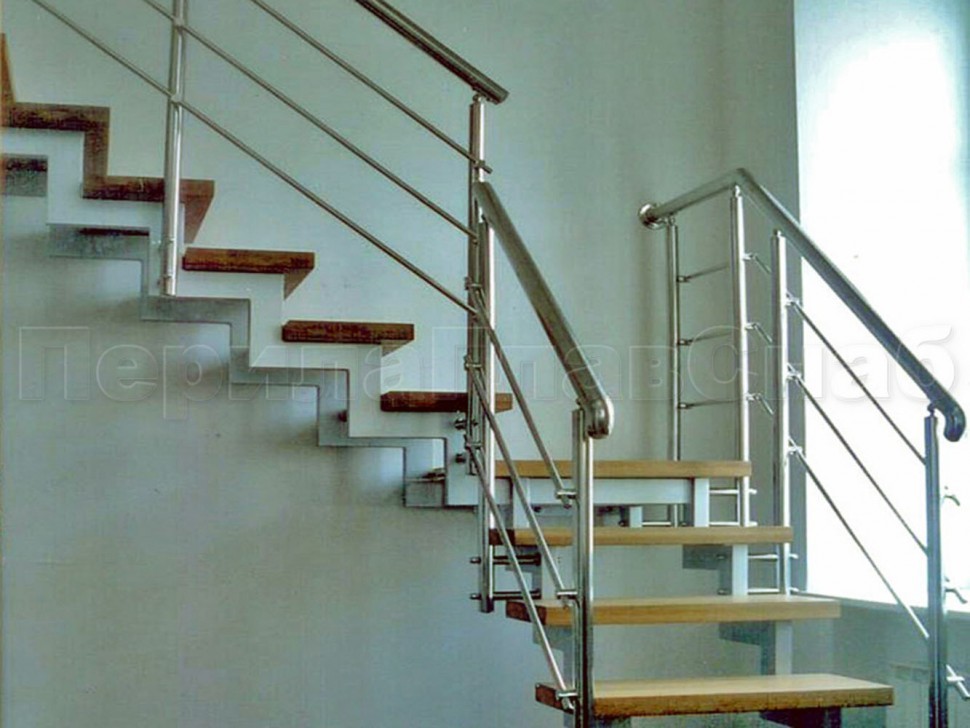Ограждения с двумя стойками в каждую ступень с деревянным поручнем и без ригелей