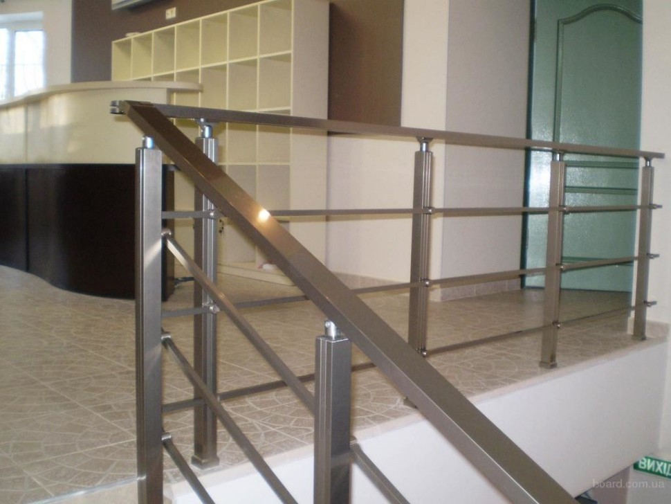 Записаться на встречу Три ригеля на держателях, квадратный поручень и круглые стойки