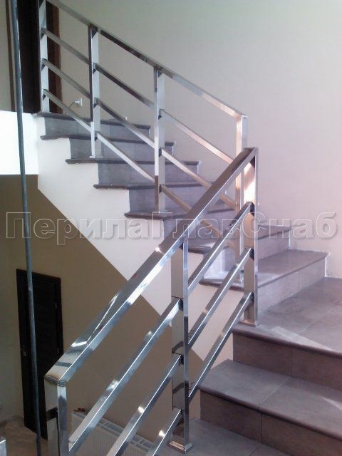 Четыре ригеля на сварке, квадратный поручень и круглые стойки