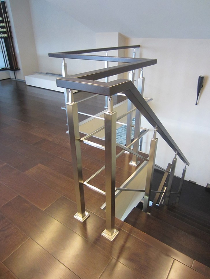 Лестничное ограждение с тремя ригелями и поручнем из латуни