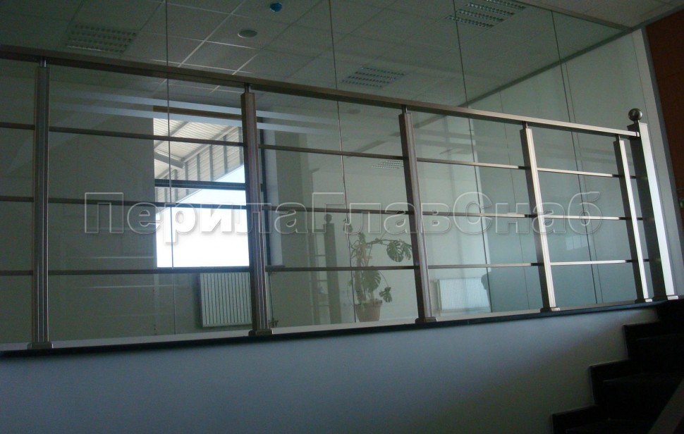 Ограждение кровли на несущем стекле и алюминиевом профиле