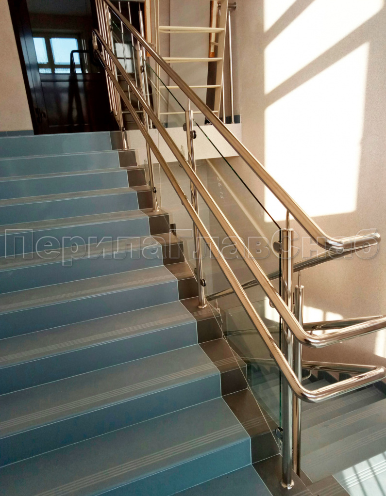 Ограждение для лестницы из нержавейки с зажимными стеклодержателями для крыльца