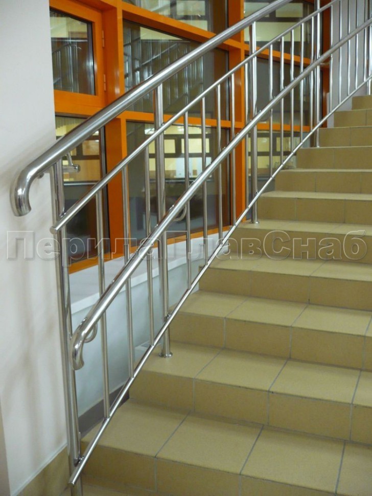 Нержавеющие ограждения для школ и детских садов с вертикальным заполнением “Частокол” - вариант №1 для крыльца
