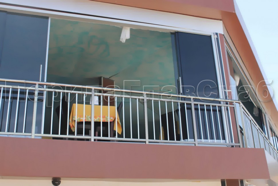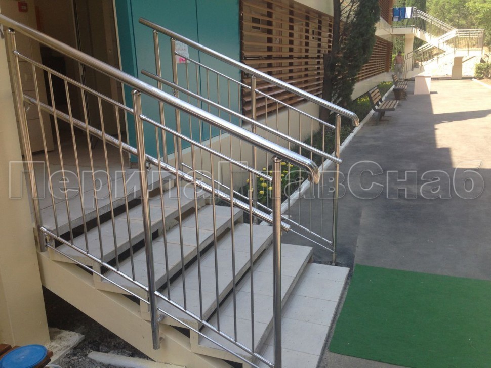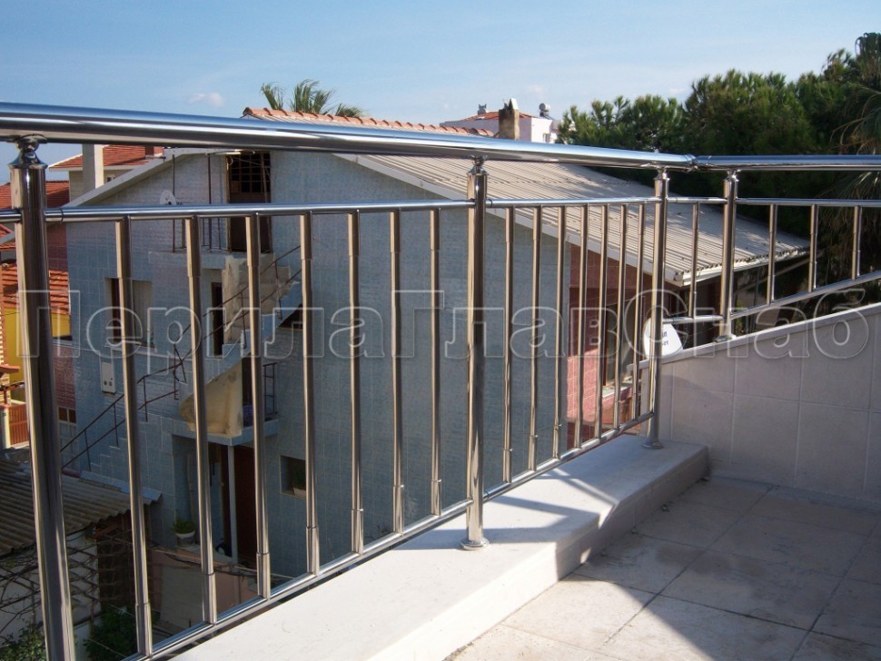 Записаться на встречу            Нержавеющие ограждения с вертикальным заполнением 'частокол' - вариант №3