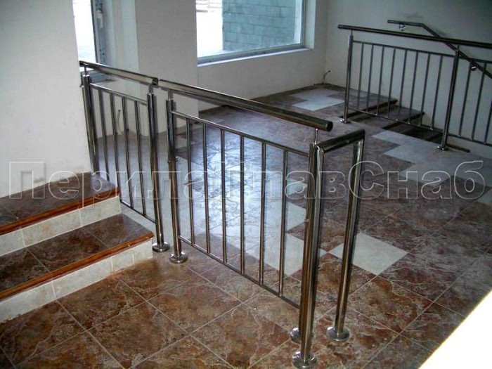 Четыре ригеля на сварке, квадратный поручень и круглые стойки