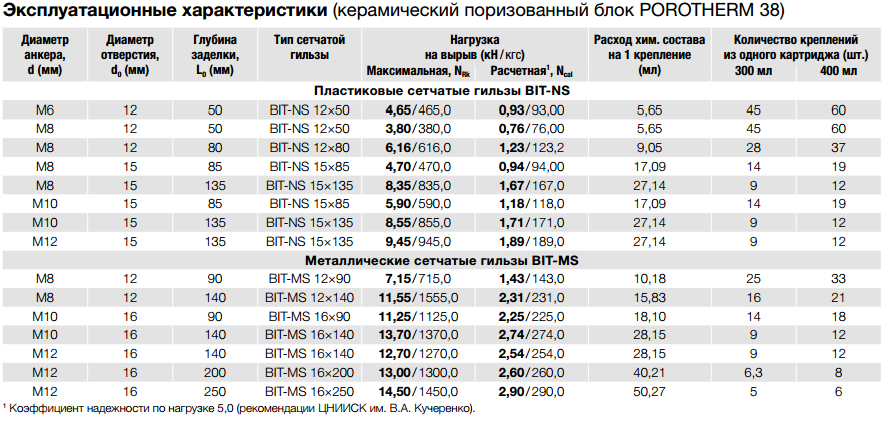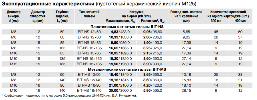 Следует отметить, что при использовании специальных гильз BIT-MS, можно менять глубину, где способность анкера во время увеличения заделки существенно увеличивается.