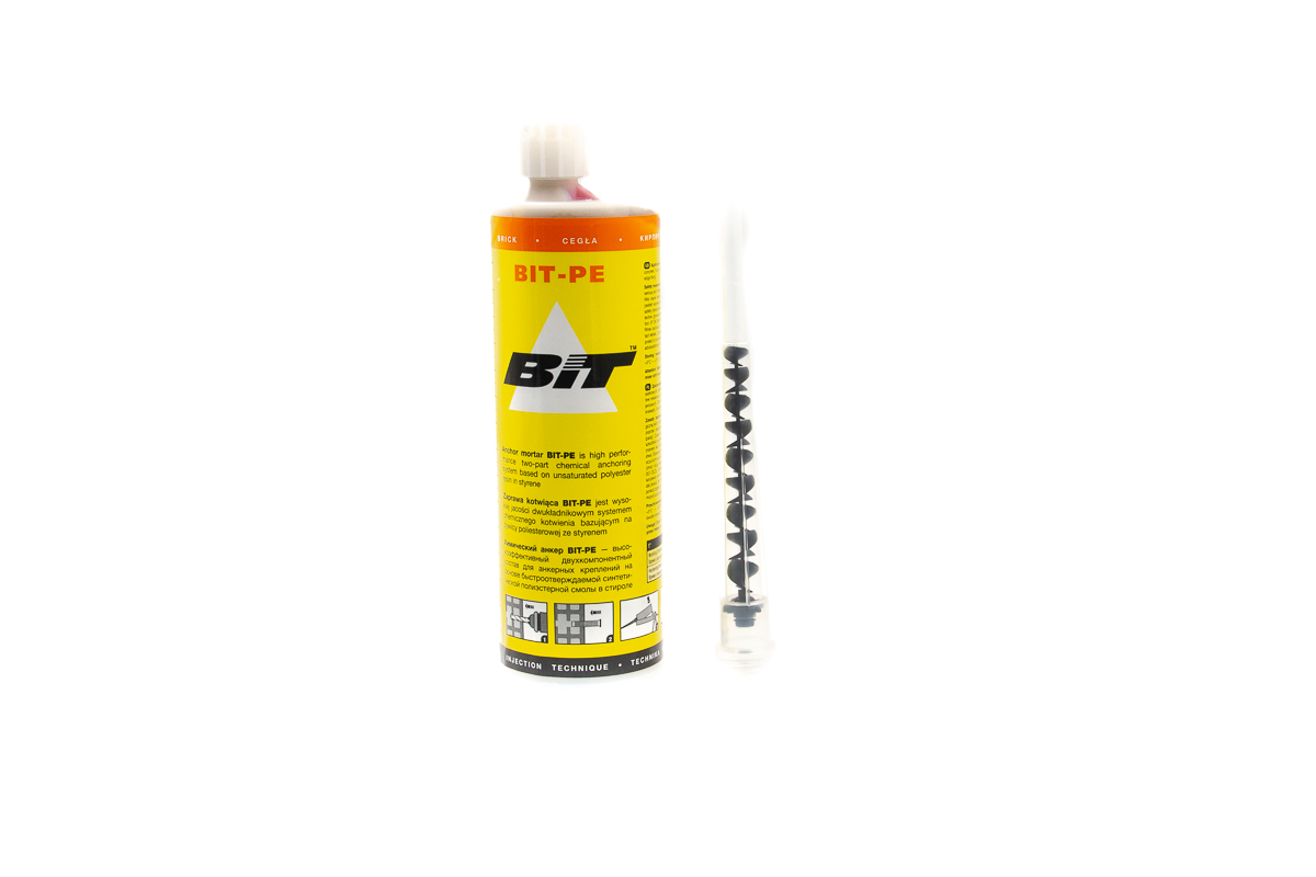 BIT-PE 400 мл – химический анкер объемом в 400 мл, конструкция которого предполагает два компонента: основа - полиэстерная смола и металлические элементы в виде шпильки, болта или прутика.