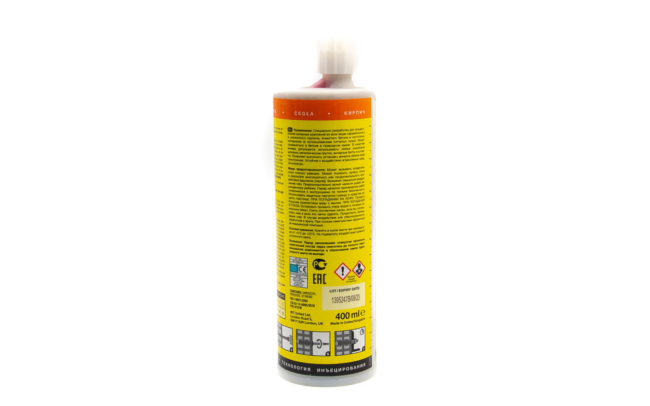 BIT-PE 400 мл имеет особенную структуру состава, где она характеризуется повышенной степенью вязкости. Это дает возможность максимально заполнить пустоту материала, при этом не перерасходовать вещество.