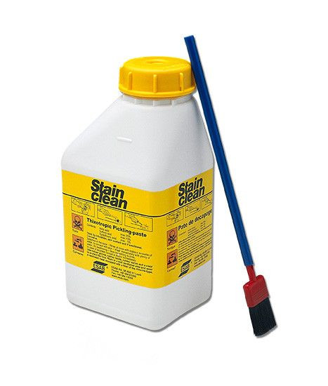 Травильная паста ESAB StainClean превосходит по своим свойствам обычные травильные пасты. Благодаря специальному хим.составу и желеобразной консистенции её очень легко использовать. Паста обеспечивает высокую чистоту и прекрасный внешний вид шва.