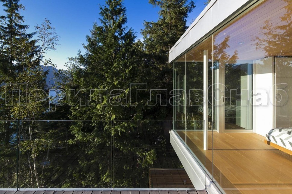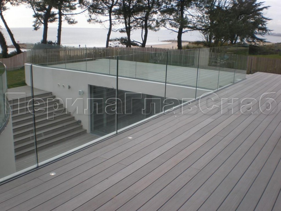Ограждение с деревянным поручнем на точечном креплении