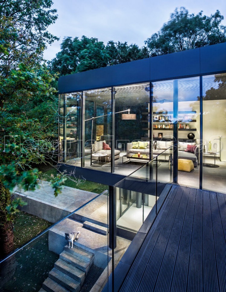Ограждение без поручня на точечном креплении на лестнице