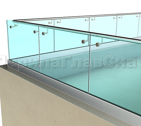 Кромка стекла может быть открыта или закрыта трубой с пазом или специальным нержавеющий п-образным поручнем.