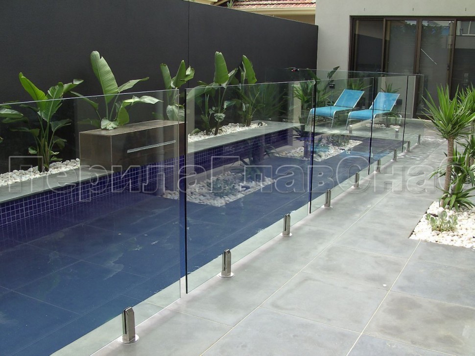 Ограждения лестницы без поручня с зажимными стеклодержателями и стойками