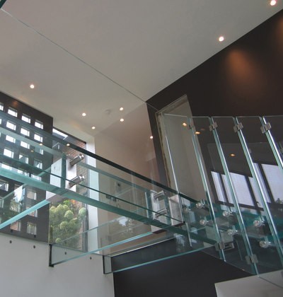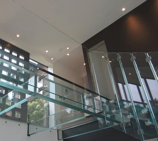 Стеклянное перекрытие из матового стекла на внутреннем балконе